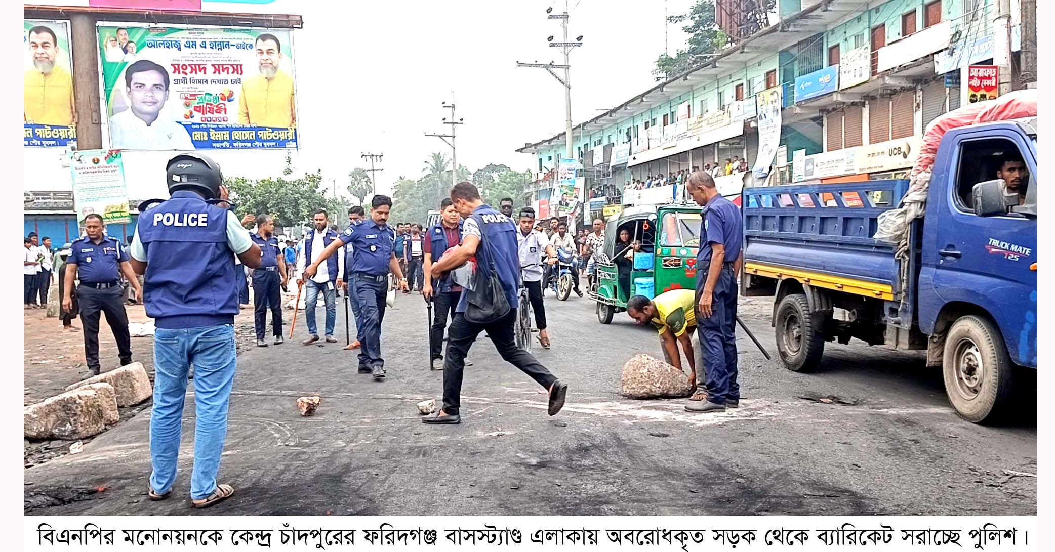ফরিদগঞ্জ থানার ভারপ্রাপ্ত কর্মকর্তা শাহ আলম বলেন, আমরা আইনশৃঙ্খলা রক্ষাকারী বাহিনীর সদস্যদের সহযোগিতায় বিক্ষুব্ধ নেতা-কর্মীদের শান্ত করার চেষ্টা করছি। তাঁদের বুঝিয়ে সড়কে যান চলাচলের ব্যবস্থা করছি।