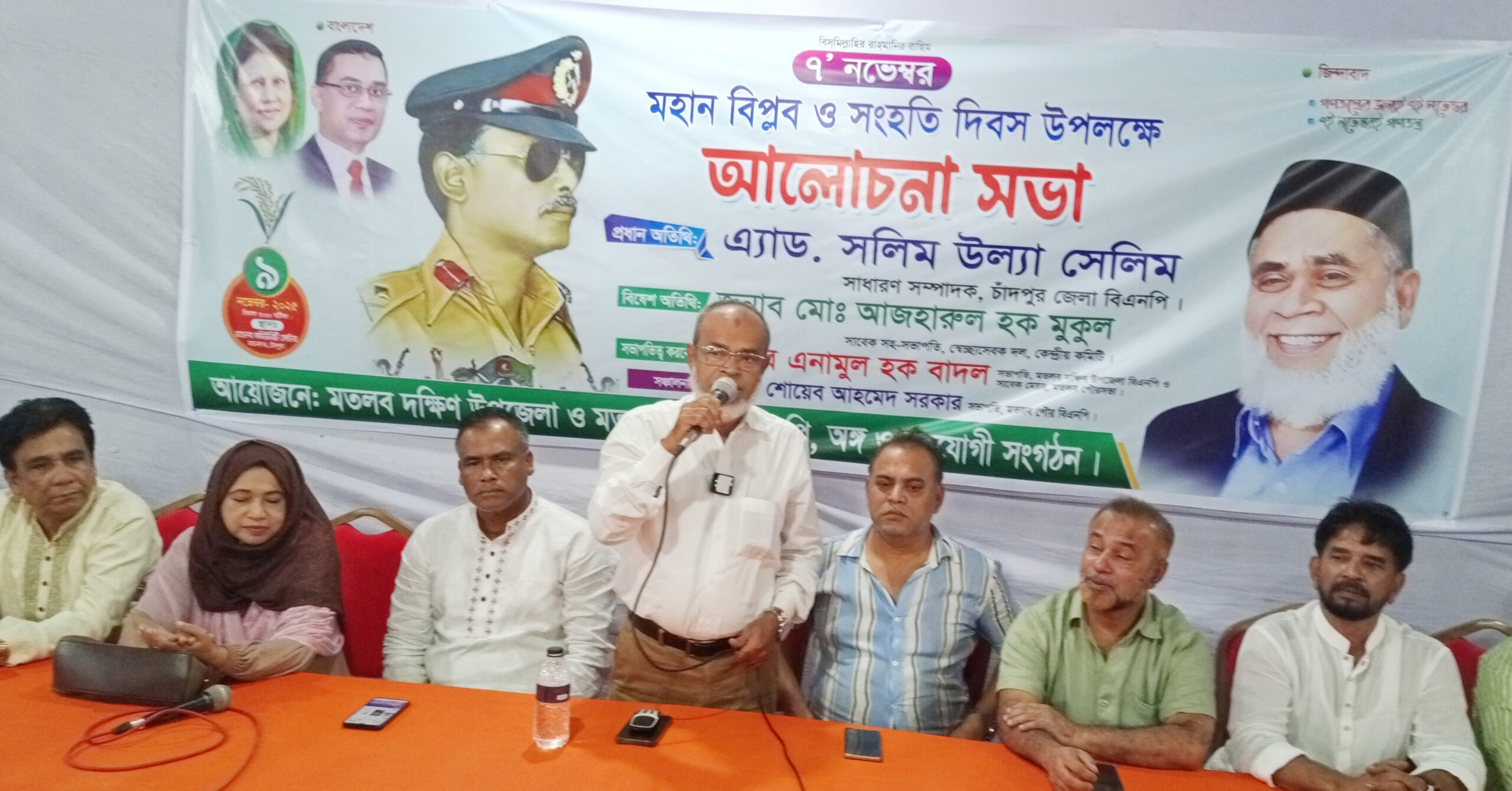 ৯ নভেম্বর (রোববার)  বিকেলে  মতলব কমিউনিটি সেন্টারে   মতলব দক্ষিণ উপজেলা ও পৌর বিএনপি ও সহযোগী সংগঠনের  উদ্যোগ আয়োজিত মহান বিপ্লব  ও সংহতি  দিবসের আলোচনা সভায়  প্রধান অতিথি হিসেবে বক্তব্যে  এ কথাগুলো বলেন।