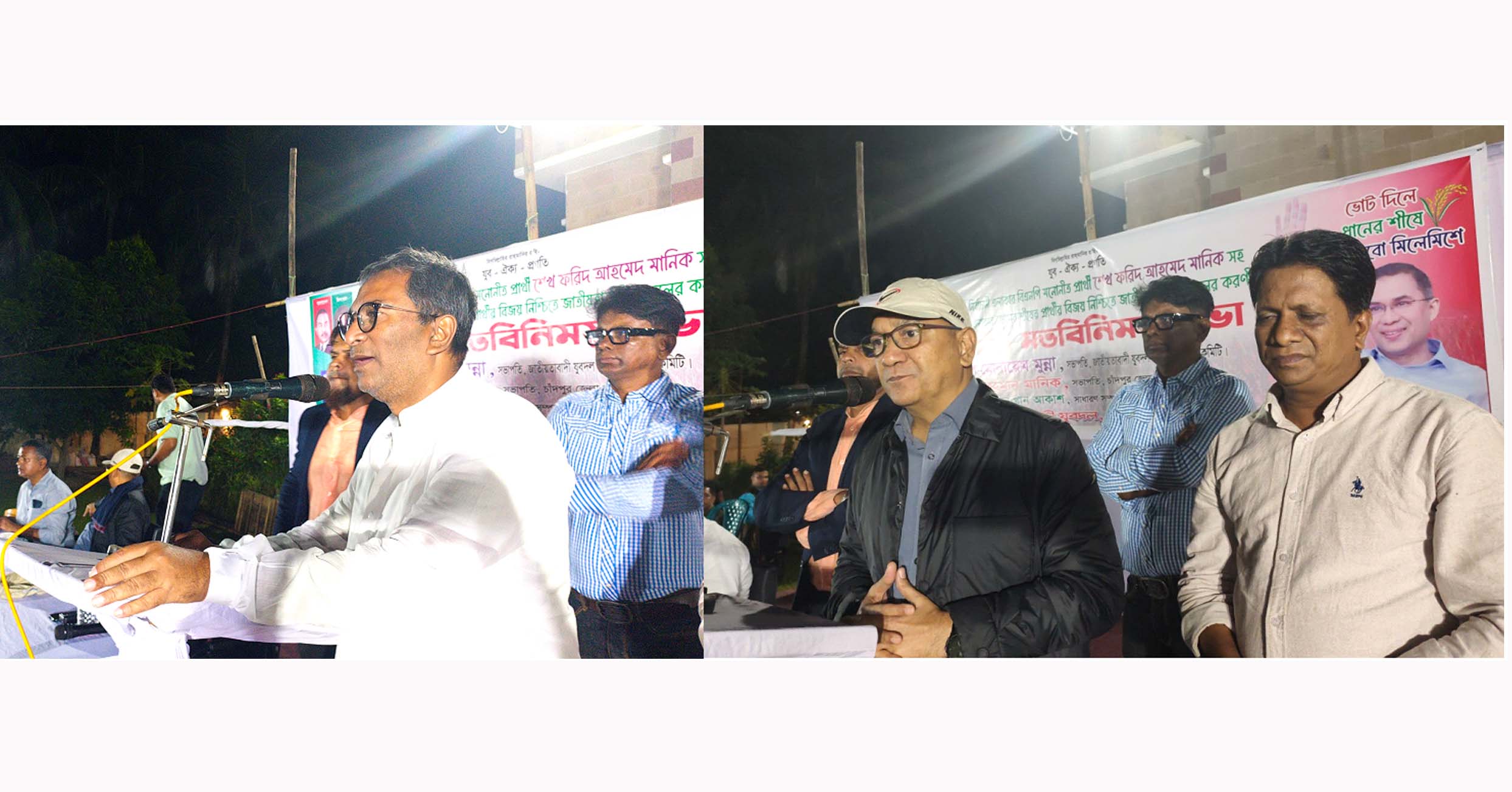 চাঁদপুর শহরের জেএম সেনগুপ্ত রোডস্থ মুনিরা ভবনে ধানের শীষের প্রার্থীদের বিজয় নিশ্চিত করতে যুবদলের করণীয় শীর্ষক মতবিনিময় সভায় প্রধান অতিথির বক্তব্য রাখেন কেন্দ্রীয় যুবদলের সভাপতি আবদুল মোনায়েম মুন্না। (ডানে) ও (বামে) বক্তব্য রাখছেন চাঁদপুর-৩ আসনে বিএনপি মনোনীত ধানের শীষের প্রার্থী শেখ ফরিদ আহমেদ মানিক। ছবি ঃ চাঁদপুর দর্পণ।