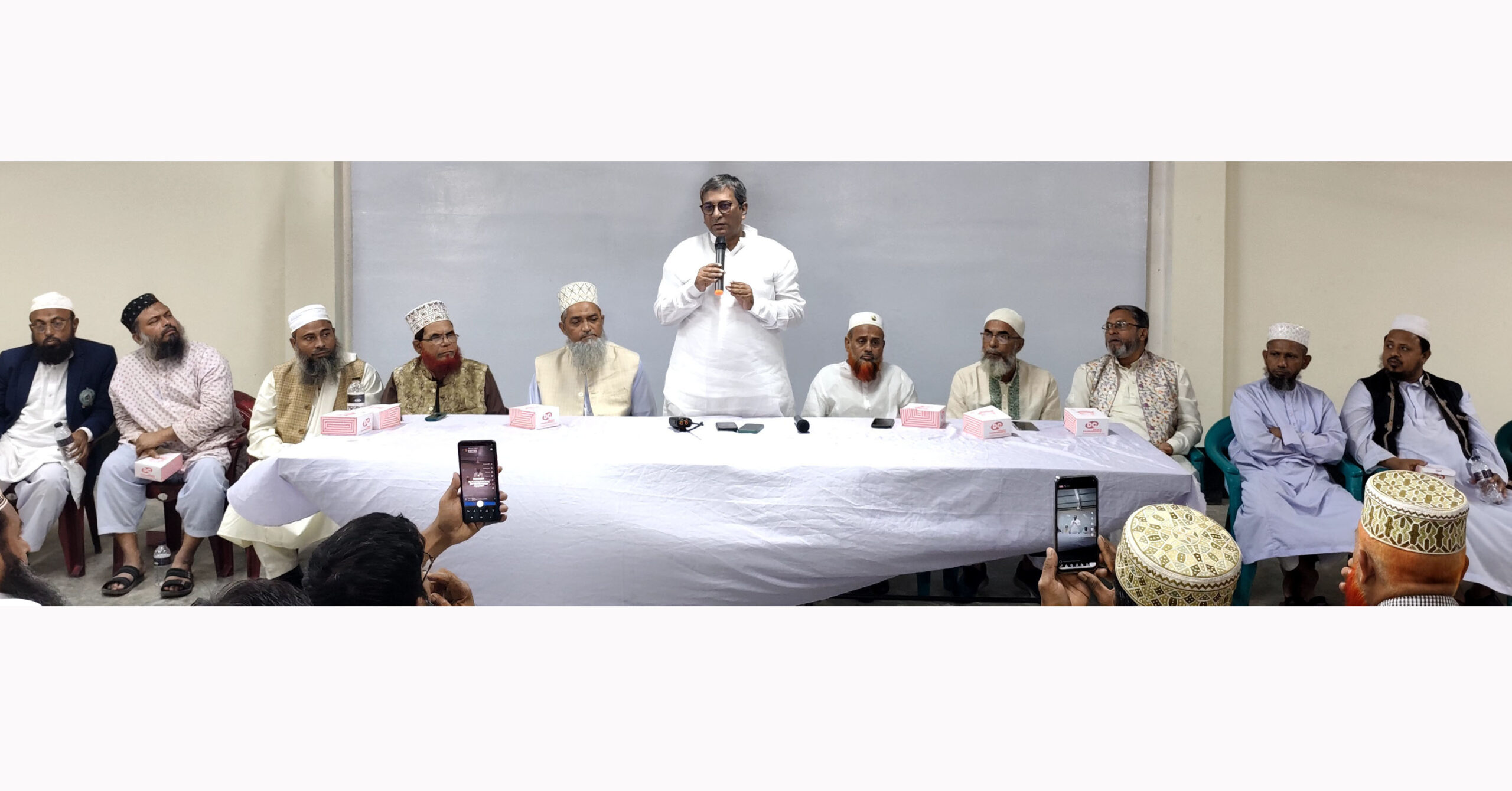 চাঁদপুর জেলা জমিয়তুল মুদাররেছিনের সভাপতি মাও. এ টি এম মোস্তফা কামালের সভাপতিত্বে বক্তব্য রাখেন চাঁদপুর জেলা বিএনপির সহ-সভাপতি মো. খলিলুর রহমান গাজী, সদর উপজেলা বিএনপির সভাপতি শাহজালাল মিশন, জেলা ওলামা দলের সভাপতি মাও. জসিম উদ্দিন পাটওয়ারী, আহমাদিয়া ফাজিল ডিগ্রি মাদ্রাসার ভাইস প্রিন্সিপাল মাও. মিজানুর রহমান, হোসেনপুর মাদ্রাসার অধ্যক্ষ মাও. মিজান উদ্দিন প্রমুখ। মতবিনিময় সভায় চাঁদপুর জেলা জমিয়তুল মুদাররেছিনের ২ শতাধিক নেতৃবৃন্দ উপস্থিত ছিলেন।