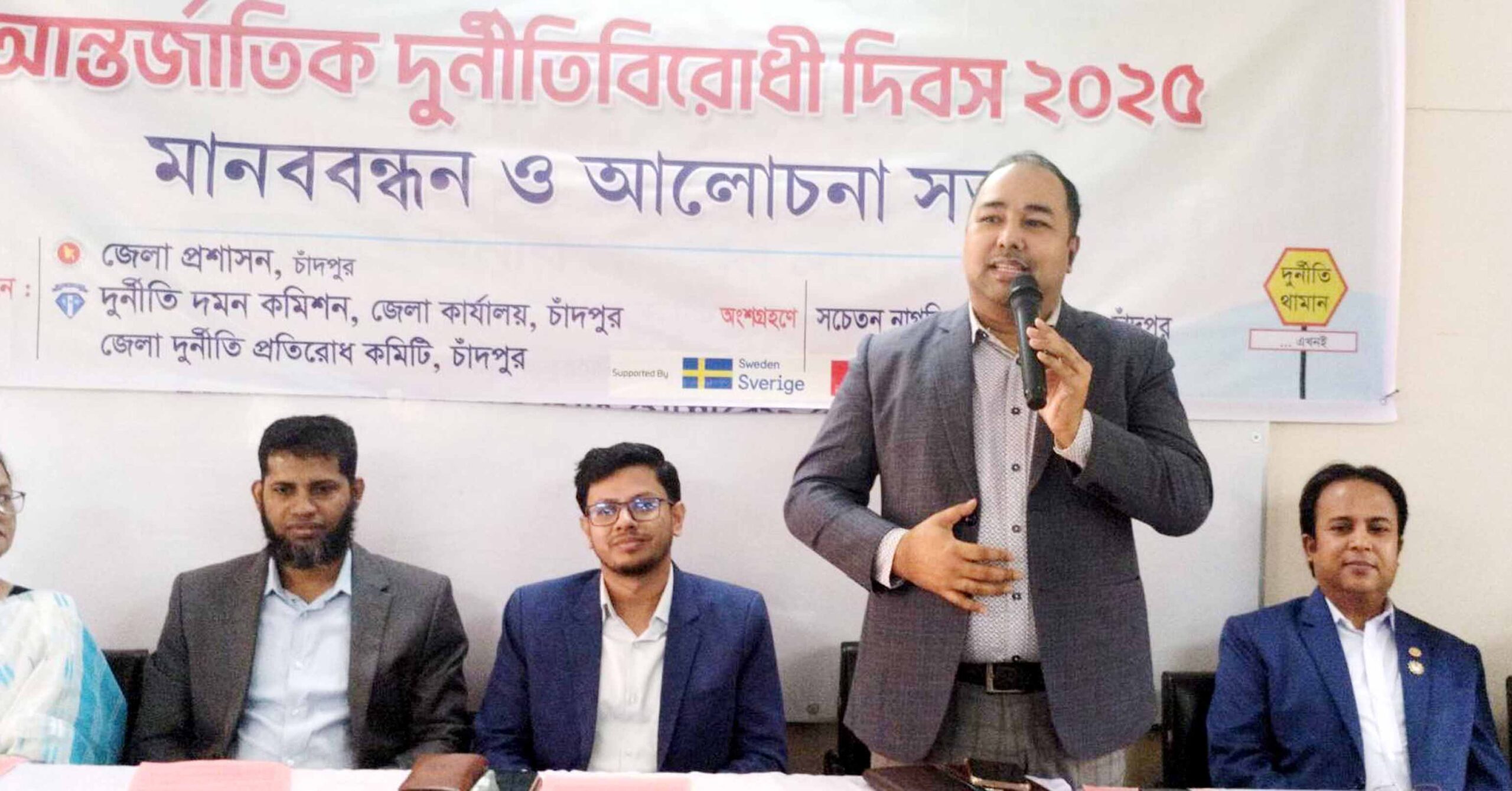 আন্তর্জাতিক দুর্নীতিবিরোধী দিবস ২০২৪ উপলক্ষে “দুর্নীতির বিরুদ্ধে দুর্জয় তারুণ্য, একসাথে, এখনই”-এই শ্লোগানকে সামনে রেখে সনাক-চাঁদপুরের আয়োজনে বাবুরহাট হাইস্কুল এন্ড কলেজে আলোচনা সভা অনুষ্ঠিত হয়। সনাক সভাপতি মোঃ আলমগীর পাটওয়ারীর সভাপতিত্বে প্রধান অতিথির বক্কব্য রাখেন অতিরিক্ত জেলা প্রশাসক (রাজস্ব) একরামুল সিদ্দিক। সকাল ৯টায় জেলা প্রশাসন, দুর্নীতি দমন কমিশন ও দুপ্রক-চাঁদপুরের আয়োজনে এবং সনাক-চাঁদপুরের অংশগ্রহণে সার্কিট হাইজের সামনে মানববন্ধন অনুষ্ঠিত হয়।