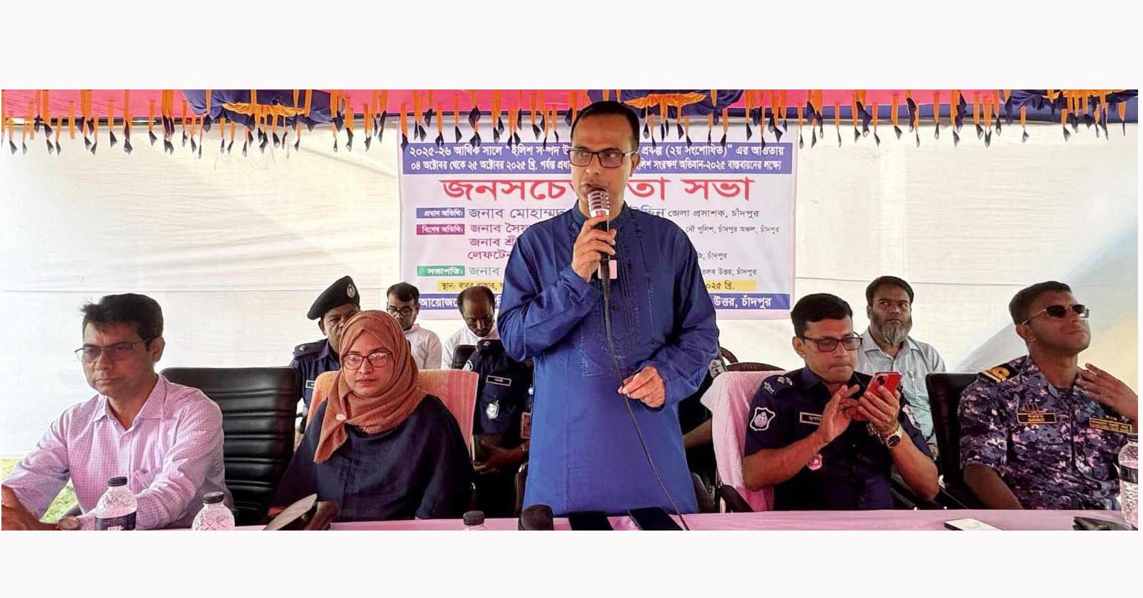 শামসুজ্জামান ডলার/জহিরুল হাসান মিন্টু, মতলব উত্তর : মতলব উত্তর উপজেলায় মা ইলিশ সংরক্ষণে জনসচেতনতা সভা অনুষ্ঠিত হয়েছে। শুক্রবার (৩ অক্টোবর) বেলা সাড়ে ১১টায় মতলব উত্তর উপজেলার ষাটনল বাজার সরকারি প্রাথমিক বিদ্যালয় মাঠে আয়োজিত মা ইলিশ সংরক্ষণ অভিযান-২০২৫ বাস্তবায়ন বিষয়ক জনসচেতনতা সভায় প্রধান অতিথির বক্তব্য রাখেন, চাঁদপুর জেলা প্রশাসক মোহাম্মদ মোহসীন উদ্দিন।
