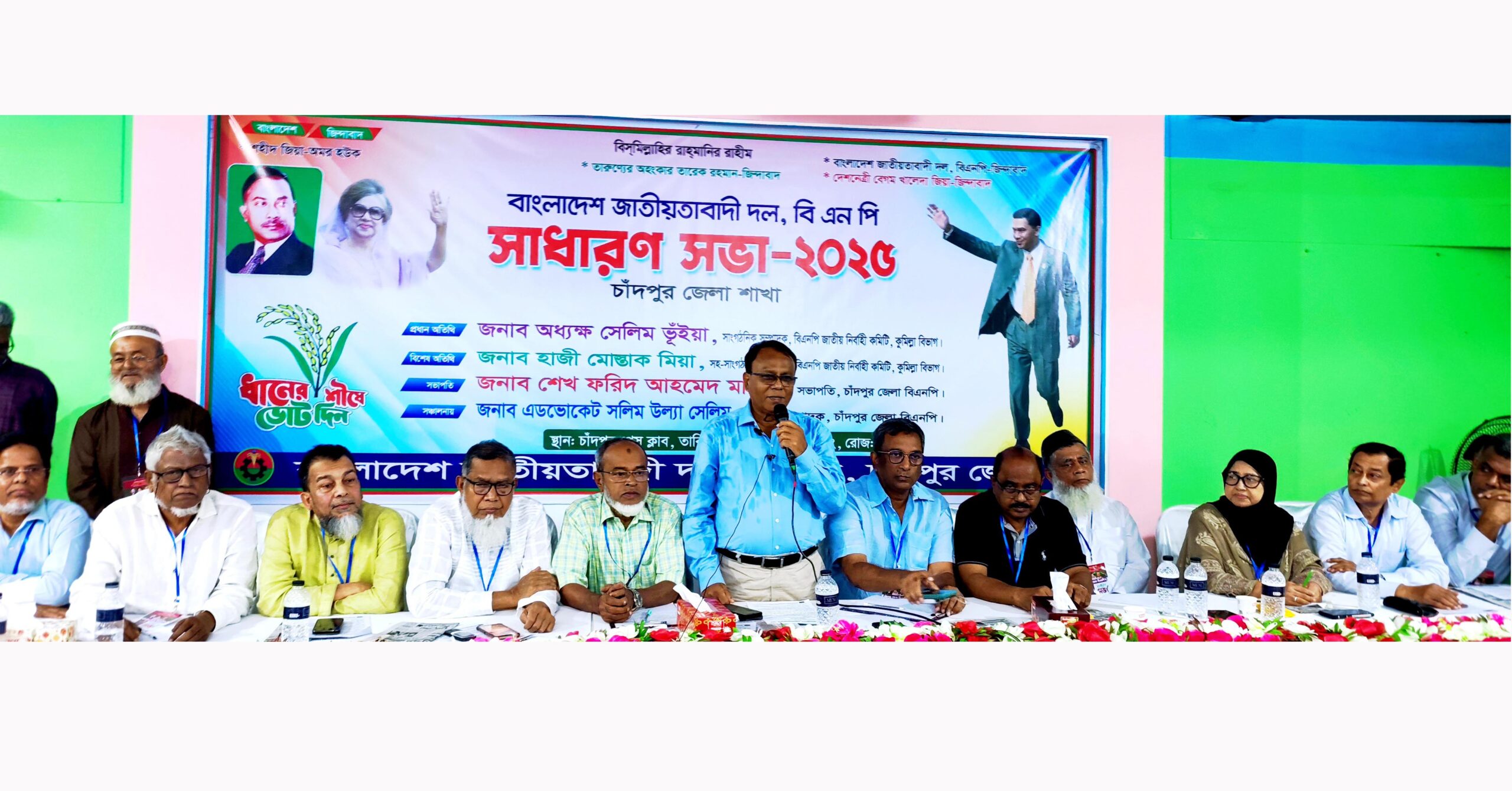 মাজহারুল ইসলাম অনিক ঃ বাংলাদেশ জাতীয়তাবাদী দল (বিএনপি) চাঁদপুর জেলা শাখার সাধারণ সভা অনুষ্ঠিত হয়েছে। শনিবার সকাল ১০টায় চাঁদপুর প্রেসক্লাবের নিচতলায় সভায় প্রধান অতিথির বক্তব্য রাখেন বিএনপি জাতীয় নির্বাহী কমিটি (কুমিল্লা বিভাগ) সাংগঠনিক সম্পাদক অধ্যক্ষ সেলিম ভূঁইয়া।