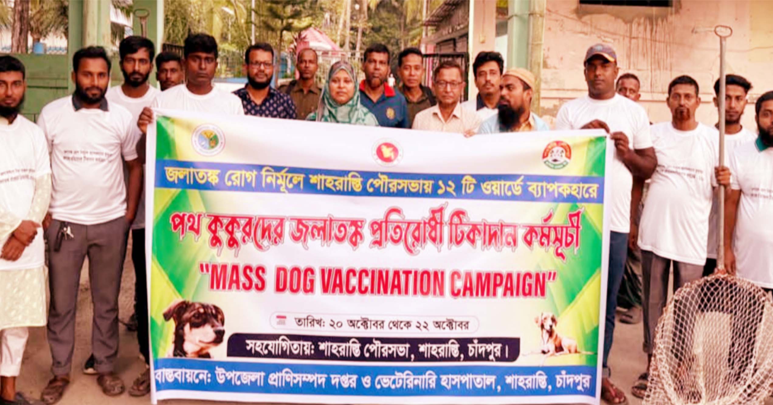 মোঃ মাসুদ রানা, শাহরাস্তি : শাহরাস্তি পৌরসভাকে জলাতঙ্কমুক্ত করার লক্ষ্যে পৌর এলাকার ১২টি ওয়ার্ডে পথ কুকুরদের জলাতঙ্ক প্রতিরোধী টিকাদান কর্মসূচি “ Mass Dog Vaccination Campaign ” হাতে নেওয়া হয়েছে। আগামী ২০ থেকে ২২ অক্টোবর পর্যন্ত তিন দিনব্যাপী এই কার্যক্রম চলবে। পথ কুকুরের সংখ্যা বৃদ্ধি ও কামড়ানোর ঘটনা বেড়ে যাওয়ায় জনস্বাস্থ্যের কথা বিবেচনা করে উপজেলা প্রশাসনের উদ্যোগে এই গুরুত্বপূর্ণ কর্মসূচি গ্রহণ করা হয়েছে।