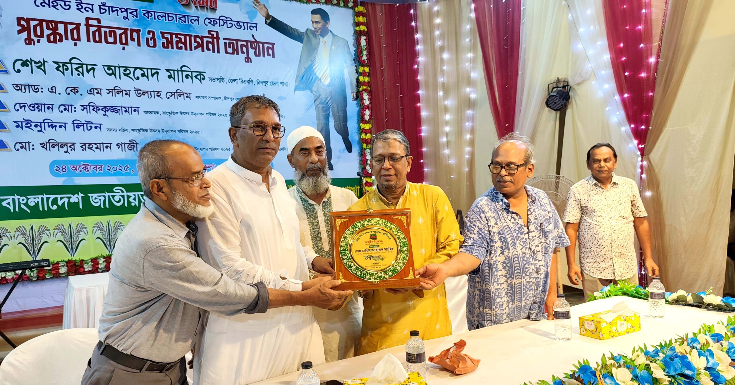 সাংস্কৃতিক উৎসব উদযাপন পরিষদ ২০২৫ এর যুগ্ম আহ্বায়ক ও জেলা বিএনপির সহ-সভাপতি মো. খলিলুর রহমান গাজী, যুগ্ম সচিব ইখতিয়ার উদ্দিন শিশু, সহ-সমন্বয়কারী শাওন পাটওয়ারী পরিচালনায় মেইড ইন চাঁদপুর কালচারাল ফেস্টিভ্যালের ১৬ দিনব্যাপী উৎসবে ৩১টি সাংস্কৃতি সংগঠন ও ১৭টি ইভেন্টে প্রায় ২০০ জন বিজয়ী প্রতিযোগিকে পুরস্কার ও সনদ বিতরন করেন প্রধান অতিথি জেলা বিএনপির সভাপতি শেখ ফরিদ আহমেদ মানিক ও সিল্কওয়েজ গ্রুপের চেয়ারপার্সন ও জেলা বিএনপির সভাপতি শেখ ফরিদ আহমেদ মানিকের সহধর্মিণী মুনীরা আহমেদসহ অন্যান্যরা।