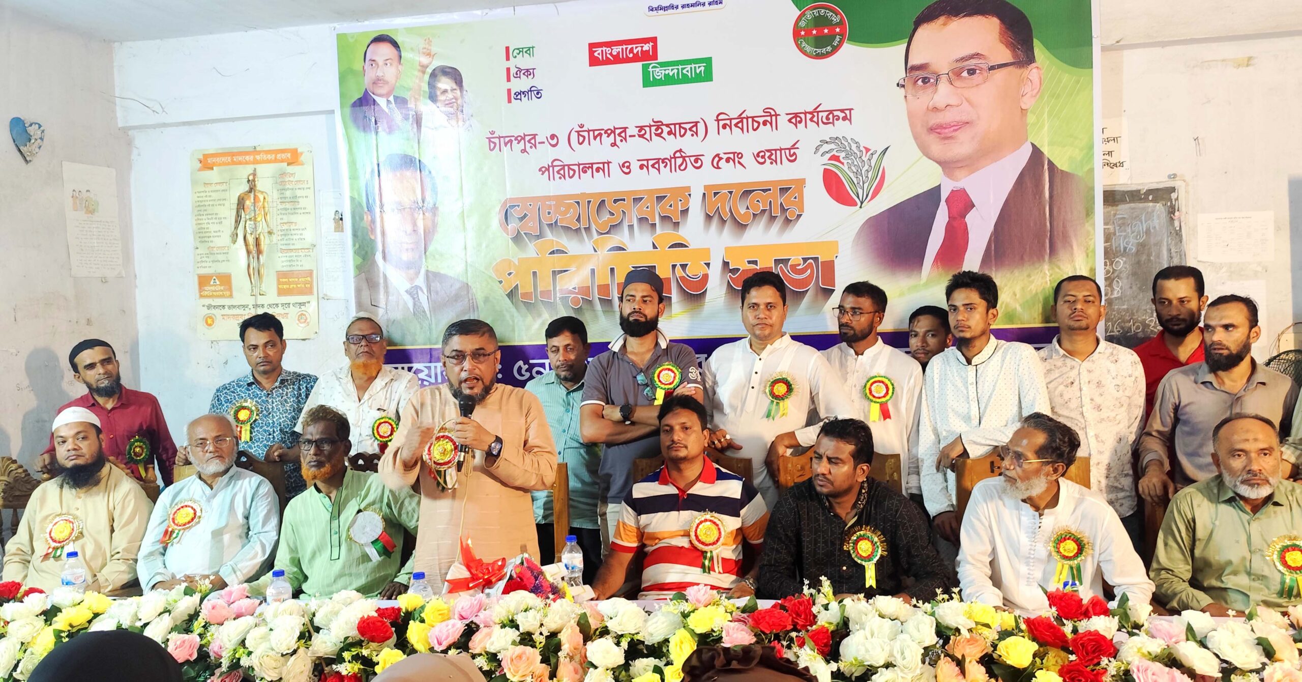 চাঁদপুর-৩ আসনে নির্বাচনী প্রচারণা ও ৫নং ওয়ার্ড স্বেচ্ছাসেবক দলের পরিচিতি সভায়