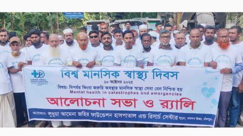 শামসুজ্জামান ডলার ও জহিরুল হাসান মিন্টু, মতলব উত্তরঃ মতলব উত্তর উপজেলার লুধুয়ায় বিশ্ব মানসিক স্বাস্থ্য দিবস পালিত হয়েছে। শুক্রবার (১০ অক্টোবর) সকালে লুধুয়ায় ডা. এমদাদ হোসেন মানিক পিএইচডি প্রতিষ্ঠিত "আমেনা…